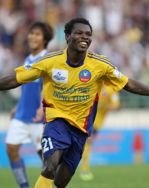Vietnamese Super League club Kienlongbank Kiên Giang have secured the signature of Nigerian striker Felix Gbenga Ajala on undisclosed terms, reports <b>kiengiangffc.com</b>.<br /><br />The 23 - year - old proved his goal scoring credentials last season, netting 14 goals in 25 matches for Dong Thap. And this made him a wanted man in the V - League. Ajala is the most high profile player that has joined Kienlongbank Kiên Giang ahead of the resumption of the season. <br /><br />He is a direct replacement for Nigeria youth international Ganiyu Oseni, who refused to extend his contract with the Lại Hồng Vân led side. Oseni had been demanding a monthly salary of $12,000 before putting pen to paper on a new contract.<br /><br />Hoang Anh Gia Lai F.C had courted Ajala in the off season. There was also talk of a reunion with former Dong Thap coach Pham Cong Loc at Navibank Saigon, but the club went bankrupt in October.<span class="st"><br /><br /><b><i>Photo Credit: 9jafooty.blogspot.com</i></b><br /></span>